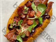 Keto Fit bez bułki180g sezonowanej wołowiny, grillowany bekon, jajko sadzone, mix sałat, ser mimolette, pomidor, cebula, suszone pomidory, domowy sos burgerowy