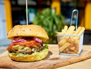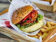 Double Cheese Burger360g sezonowanej wołowiny, domowa bułka maślana, ser mimolette x2, czerwona cebula, pomidor, pikle, sałata, ketchup, domowy sos burgerowy
