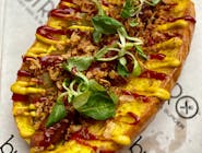 🌯 Tortilla z WołowinąTortilla pszenna, wołowina chili con carne z fasolą, sałata rzymska, cebula, pomidor, ser mimolette, sos aioli